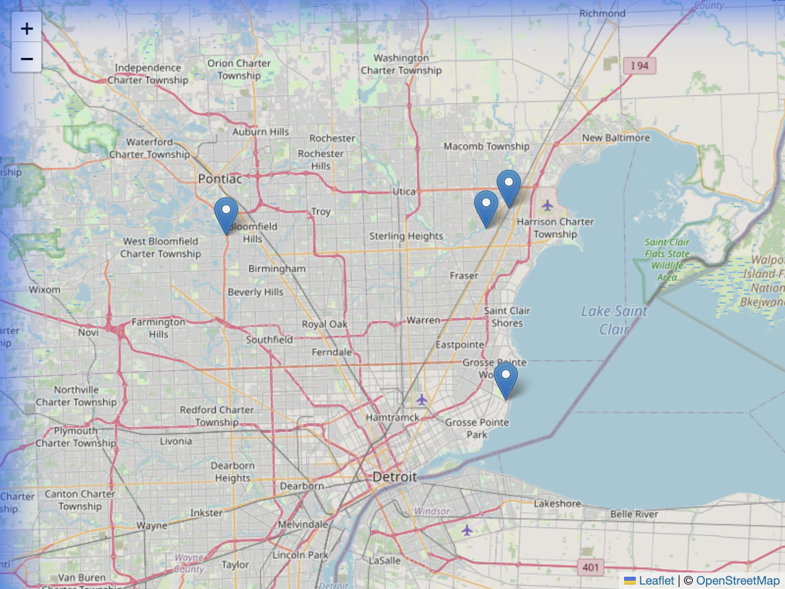 The following map shows the coverage area and locations of our linked repeaters across Metro Detroit: